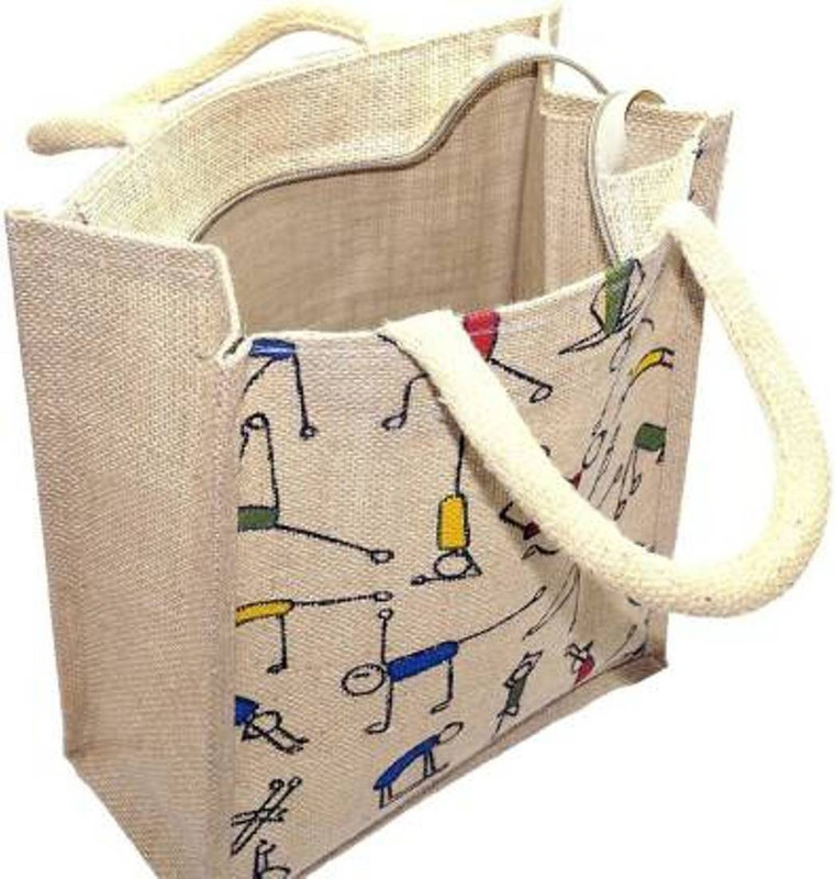 Oyes MIDIUM SIZE (14.5 X 12 X 5) JUTE BAG | YOGA PRINTED| Ti ...
