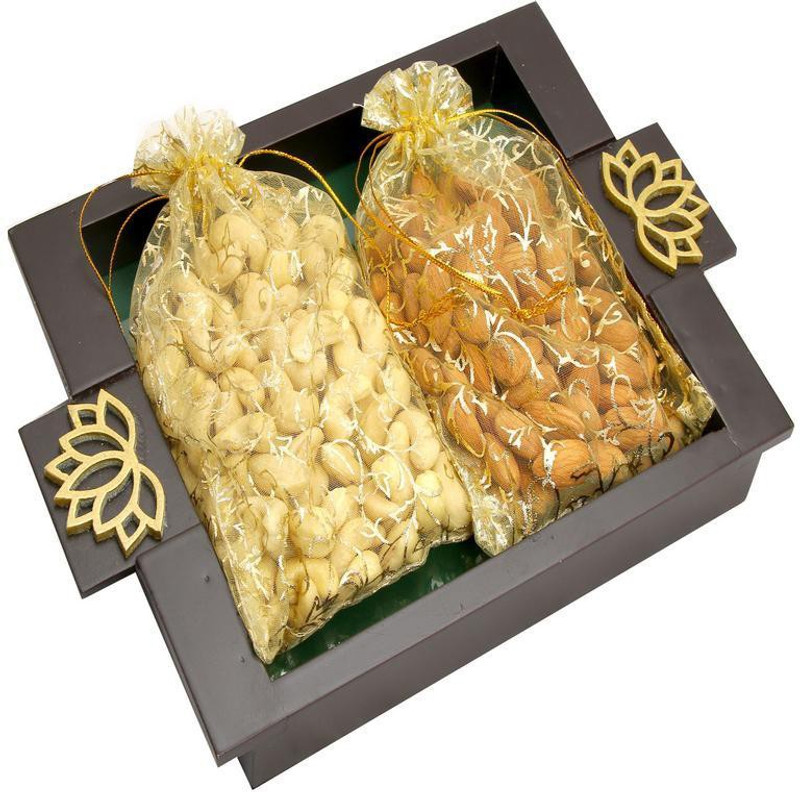 Ghasitaram Gifts Green Wooden Serving Tray with Dryfruit Pou ...