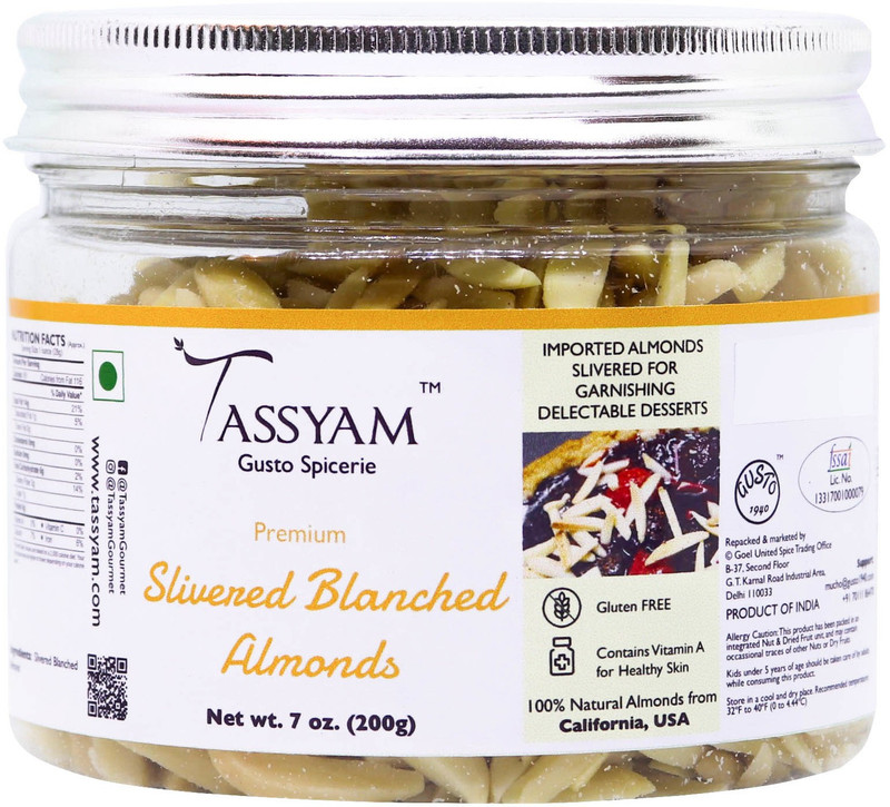 Tassyam Slivered Blanched Almond, 200g Premium Jar Almonds(2 ...