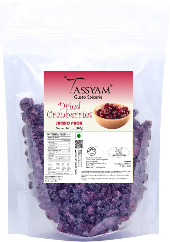 Tassyam Dried Cranberries 400g Jumbo Pouch | Healthy Dry Fru ...