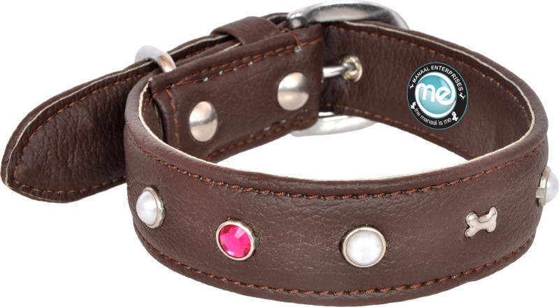Manal Enterprises Dog Collar & Leash(Medium, BROWN)