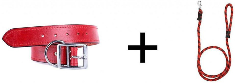 PetSutra PetSutra Red Leather Dog Collar and Red Rope Leash ...