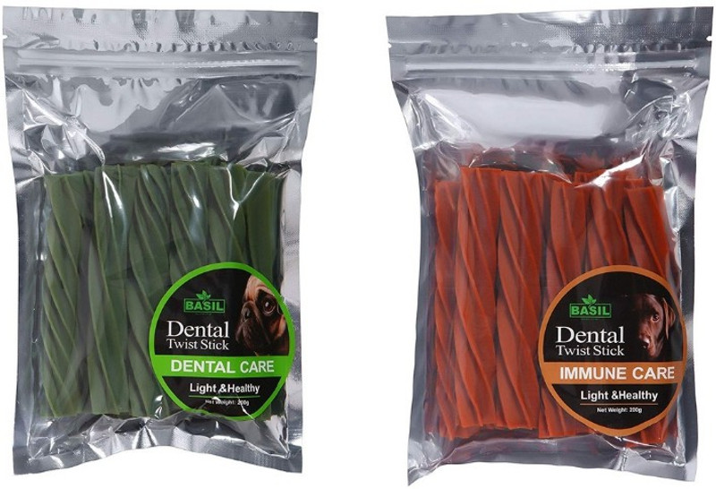 Basil Dental Twist Stick Dog Treat Combo (Dental & Immun ...