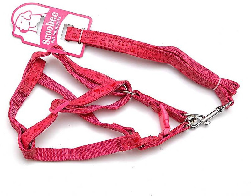 Scoobie Dog Harness & Leash(Medium, bright pink)