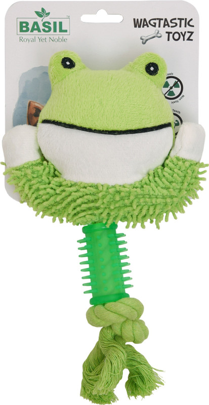 Goofy Tails Basil Squeaky Frog Face With Rope Plush Cotton P ...