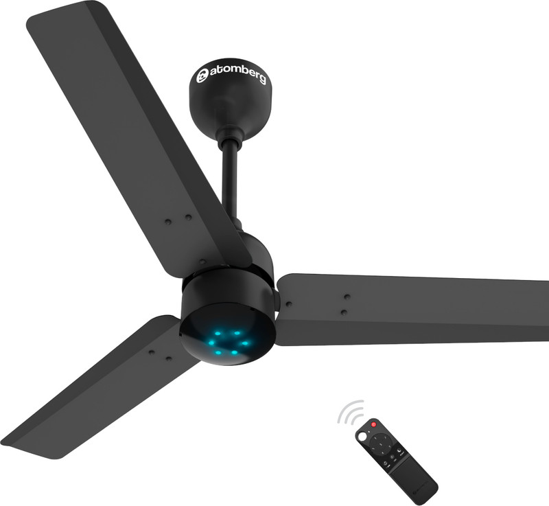 Atomberg Renesa 5 Star BEE Rated 900 mm BLDC Motor with Remote 3 Blade Ceiling Fan(Midnight Black, Pack of 1)