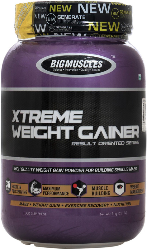 Big Muscles Nutrition presents this xtreme weight gainer that gets you a “Wining Befecta” for growth and performance. Big muscles weight gainer features the scientifically advanced Tri-Phase carbohydrate sources, com (Maltodextrin) and rice. a sophisticated fibrous, super low glycaemic carbohydrate with a 10 hour release time to increase power and size. A serving of 50gms of Big Muscles Weight Gainer taken three times a day will provide approximately 22.5g of Amino Acid rich protein for muscles building punch, 111g of Energy rich complex carbohydrates, 3g of fat with essential vitamins and minerals to support anabolic development down to the molecule level. Moreover, this strawberry flavoured weight gainer comes in powdered form and helps in exercise recovery with muscle building. The product is suitable for even vegetarians.