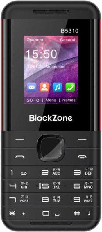 BlackZone B5310 is a wonderful Feature Phone with vibration all the latest specifications. This phone has a Digital Camera with Flash that allows you take great pictures. With Features like Bluetooth, FM Radio, Dual Sim, Inbuilt Memory, Games, Music Player, Internet Browsing, Video Recording and Playback, Expandable Memory upto 8 GB, this Handset is a must own device for everyone. Feature studded Mobile Phone at an affordable price.
