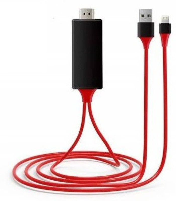 Bluebells India HDMI Cable 2 m HDMI Cable Adapter, Aibocn Lightning MHL to HDMI Digital AV Adapter Cable to 1080P HDTV 3.1 A 1.5 m HDMI Cable (Compatible with Compatible with iphone ipad / ipod, Black, Red, One Cable)(Compatible with Compatible with iphone ipad / ipod, Black, One Cable)
