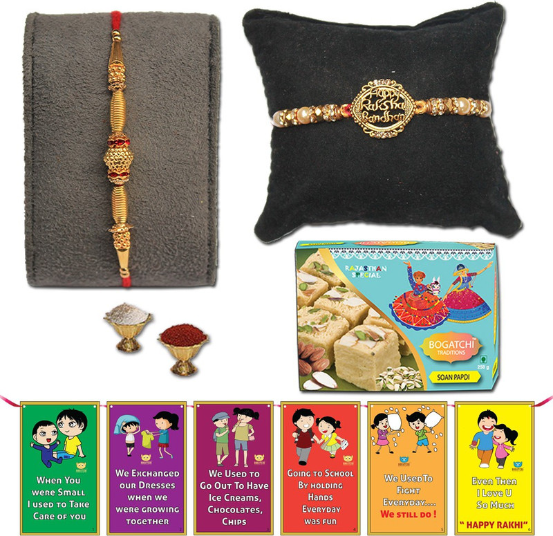 | Package Contents | Soan Papdi box, 2Rakhi,Roli Chawal,Brother Sister Story Card |