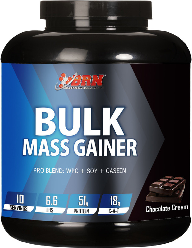 The Ultimate Muscle Mass Building Formula – BRN BULK Mass Gainer The newly Launched BRN BULK MASS Gainer is the ultimate mass gain formula that empowers you to grow big and muscular. The high-protein anabolic blend along with complex crabs in BRN BULK MASS Gainer is powered with Advanced digestive enzymes, Creatine, Arginine, Taurine & 11 Essential Vitamins; It is a must-have gainer for athletes & bodybuilding enthusiasts. Blended with 4 different protein sources Whey Protein (WPC), Milk Protein Isolate (MPI), Defatted Soy Isolates (SPI) & Micellar Casein (MC), the ultimate mass-gain formula supplies Essential Amino Acids and Branched Chain Amino Acids to support serious weight training, accelerate recovery and build lean muscle mass rapid fast. Unlike a regular mass gainer where the bulk of calories come from sugar and fat, BRN BULK MASS Gainer is low in sugar & Fat and focuses on complex carbs and high-quality proteins to fill in the calorie needs. Enriched with digestive enzymes, BRN BULK MASS Gainer reduces likely hood of bloating and allows the bodybuilder in you to digest and assimilate nutrients for maximum muscle gains and serious weight lifting. Packed with slow-medium and fast release proteins BRN BULK MASS Gainer maximizes post workout recovery, prevents muscle breakdown and supports serious weight training in bodybuilding enthusiasts. The scientifically formulated BRN BULK MASS Gainer supplies nutrients to muscle tissues after a strenuous workout and triggers new muscle synthesis. Enriched with Essential vitamins and minerals BRN BULK MASS gainer relieves energy fatigue and empowers you to train harder. Get the formulated and transform your physique.