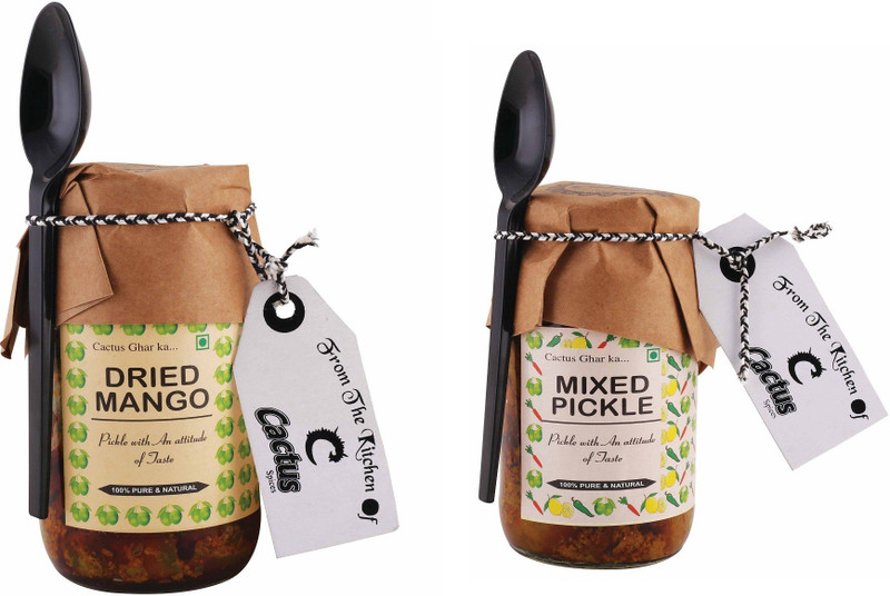 Dried Mango Pickle is a pure homemade pickle which contains very less oil. Its main ingredient is hand cut mango. To prepare this pickle freshest spices are picked, measured & sun dried, cherishing the sacred age old recipes. It is naturally preserved which brings intrinsic flavor to the pickle. Mixed Pickle is a mix of carefully selected fruits and vegetables from across India to offer a distinct taste and flavour.