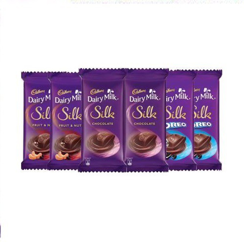 Cadbury Dairy Milk Silk is all about regaling in the chocolate’s richness and creaminess. It offers you the reason to celebrate every small and big occasion of happiness. In short, indulge in a rich, smooth and creamy celebration. This combo comprises 2 packs of Cadbury Dairy Milk Silk 60g , 2 packs of Cadbury Dairy Milk Silk Oreo 60g & 2 packs of Cadbury Dairy Milk Silk Fruit and Nut 55g.