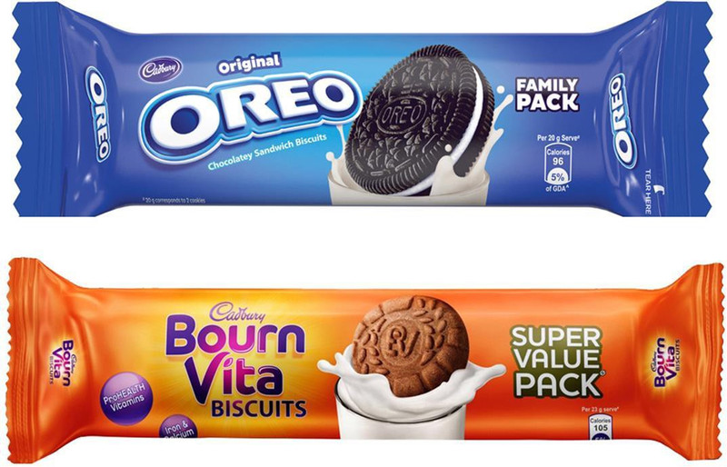 Get a healthy and delicious treat with Oreo and Bournvita biscuits. Oreo sandwich cr me biscuit brings together the rich, smooth taste of Vanilla cr me filling with the bold taste of two crunchy Chocolate wafers. Take a delicious break with an Oreo cookie, the perfect anytime snack. Bournvita Biscuits provides the choice of a delicious biscuit enriched with the wholesome goodness of Bournvita.They are crunchie chocolatey cookies that have the right balance of taste and health