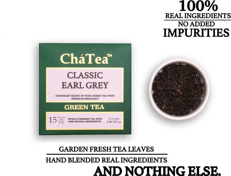 Enjoy the finest selection of Green Tea known for its rich content of unique catechins. ChaTea Green Tea delights the senses with its clean, calming aroma, and beautiful pale green color. This Classic Earl Grey is an Honorary Blend of Pure Green Tea with Premium Bergamot. We make sure each tea we send out is fresher and tastier than any tea you’ve ever had. It is handpicked and sourced directly from tea growers to get the freshest tea. The ingredients of the Tea Green Tea and Bergamot Extracts.