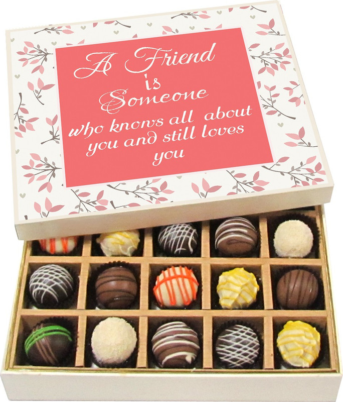 Chocholik Friendship Gift – A Friend Is Someone Who Knows All – Dark, Milk, White Chocolate – 20pc Truffles(300 g)