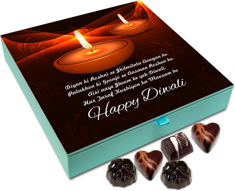 Presenting a Unique Gift Box with lovely Wishes for diwali. Inside this Beautiful and Light Weight Box are assorted Belgian chocolates. The exotic flavors of chocolate truffles are sure to tickle your taste buds. The assorted Belgian chocolates are perfect for the younger age group and also for those, who are young at heart. It Offers Heavenly Treat Of Truffles. Chocholik is of the Leading TOP Brand to Use High Quality Belgian Imported Coverture Chocolate Beans and Process through European Machines to Give the Same Quality in India.