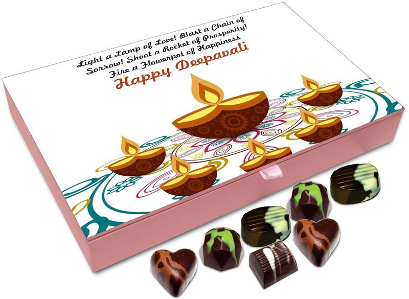 The crisp, creamy pralines in mouth watering flavors of dark, white or milk chocolate are packaged in a gorgeous gift box. These .chocolates are just perfect for those who love all the flavors. Buy Chocholik Special Diwali Gift hampers, Diwali Luxury Chocolates, Diwali Sweets.