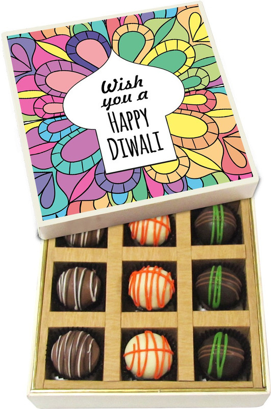 Diwali Gifts – Wish You a Happy Diwali – Dark, Milk, White Chocolate Truffles – 9pc