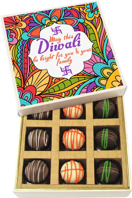 Diwali Sweets – May This Diwali Be Bright For You – Dark, Milk, White Chocolate Truffles – 9pc