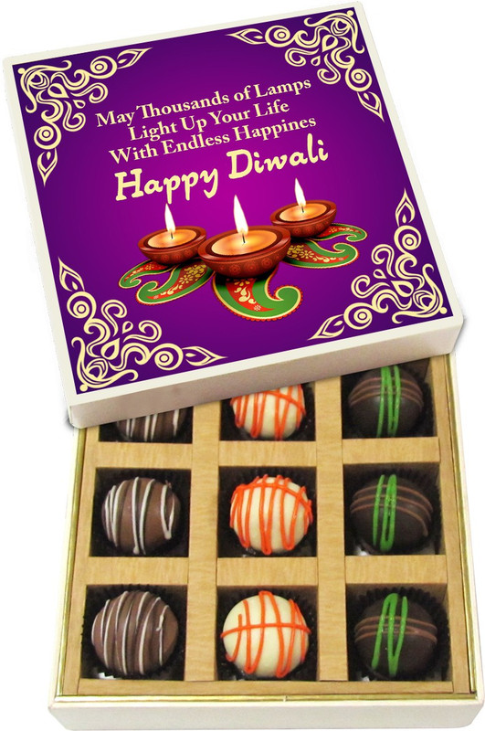 Diwali Sweets – May This Diwali Bright Up Your Life With Endless Happiness – Dark, Milk, White Chocolate Truffles – 9pc