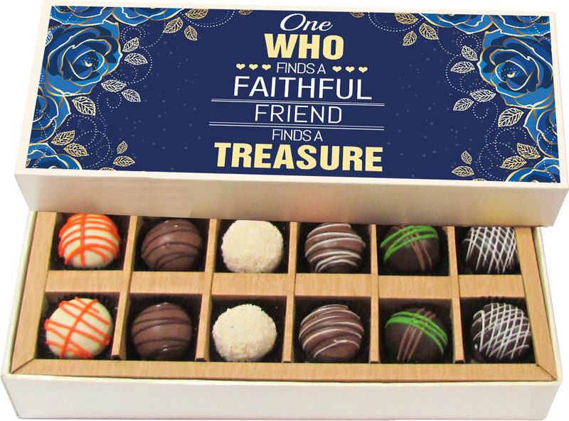 Chocholik Friendship Gift – Faithful Friend Like a Treasure – Dark, Milk, White Chocolate – 12pc Truffles(180 g)