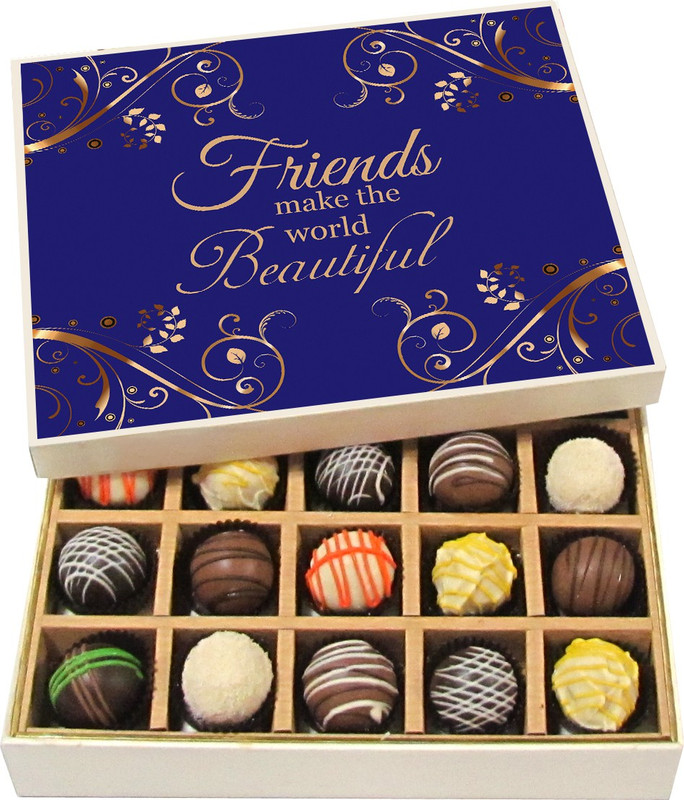 | Model Name | Friendship Gift – Friends Make the World Beautiful – Dark, Milk, White Chocolate – 20pc |
