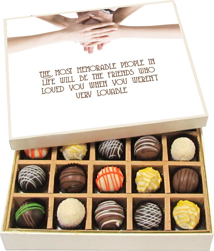 Chocholik Friendship Gift – The Most Memorable People In Life Will Be Friends – Dark, Milk, White Chocolate – 20pc Truffles(300 g)