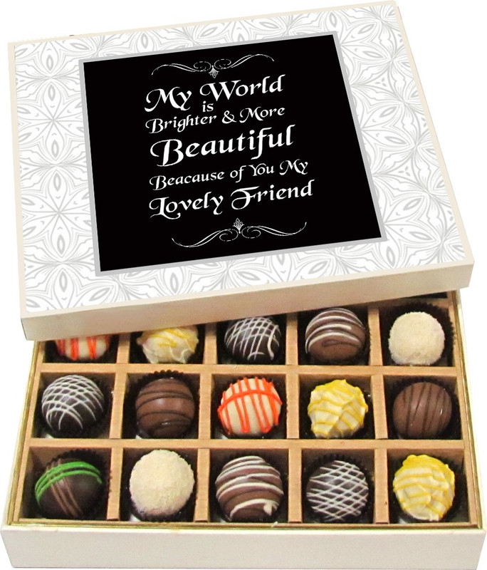 Chocholik Friendship Gift – My World Is Brighter & More Beautiful – Dark, Milk, White Chocolate – 20pc Truffles(300 g)