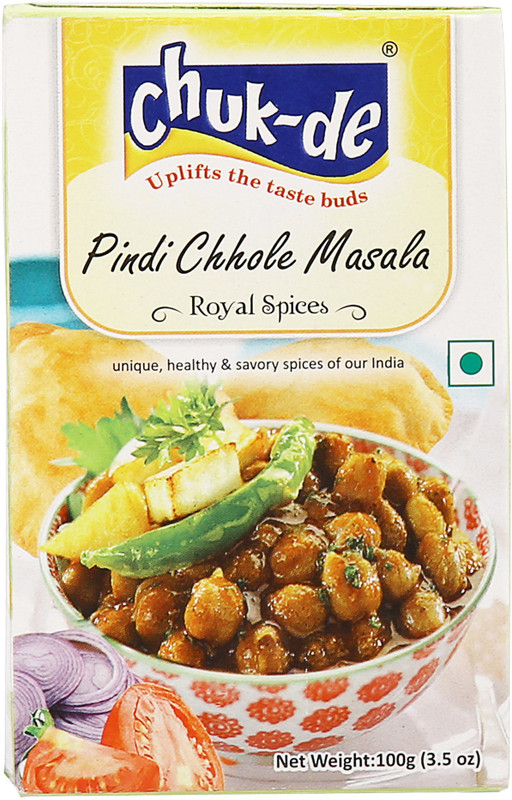 | Other Features | Pindi Cholle Masala: The pindi cholle is the beloved taste of Rawalpindi in Punjab, Pakistan, hence the name pindi cholle. The masala powder has all the required ingredients in the perfect balance to enhance the flavour of this spicy delicacy., Taste Profile: This North Indian dish is loaded with flavours which Pindi Cholle Masala helps magnify, creating a spicy curry, with a tickling tang from the mango powder present in it. The heat from the spicy Cholle Masala Powder compliments and cuts through the sweet earthy taste of the chickpeas., Ingredients: Chuk De Pindi Cholle Masala Powder is a traditional creation made with roasted ground spices. Dry mango, salt, red chilli, pomegranate seeds, cumin, black pepper, black salt, cinnamon, dry ginger, clove, nutmeg and caraway seeds are some of them., Royal Spice: This masala is made with pure and natural spices to provide the perfect taste, aroma and colour to your traditional Pindi style dishes. |