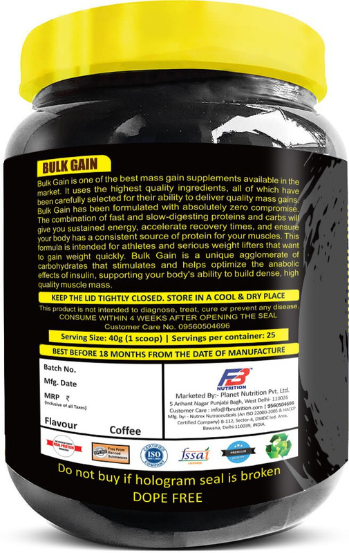 Bulk Gain is one of the best mass gain supplement available in the market. It uses the highest quality of Carbs & proteins that gives high energy.Bulk gain is ideally designed for Athletes & serious weight lifters . bulk Gain provides slow digesting proteins & carbohydrates that gives consistance energy for debse , high quality Muscle mass.