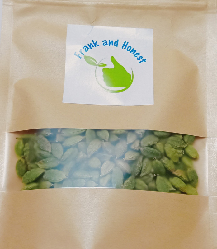 | Other Features | What makes Frank & Honest Cardamom better than the rest? At Frank & Honest, we make a lot of effort in choosing the Highest Export Quality 8 MM Natural Cardamom ensuring you get maximum seeds per pod, ideal moisture and less peels per kg, for best flavoring., Is Greener better? Not necessarily. Ask the locals in Kerala and they will tell you that slightly off-green / greenish yellow colour pods with open mouth are the best quality. They are neither bleached, coloured or polished to provide them an unnatural look. When you see Cardamom pods which are too green that probably means they might be a bit too ripe or have been artificially coloured. Slightly off green is best., Cardamom (small) is also known to have many health benefits namely Stimulant, tonic, diuretic, carminative, digestive, expectorant, cardiotonic & used in several pharmaceutical preparations., Cardamom oil is a precious ingredient in food preparations, perfumery, health foods medicines and beverages. |