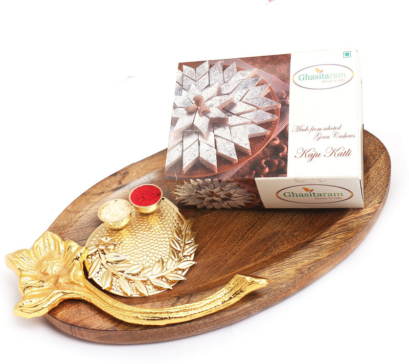Ghasitaram Gifts Hampers-Wooden platter With Kaju Katli & Pooja Thali Combo(200g)