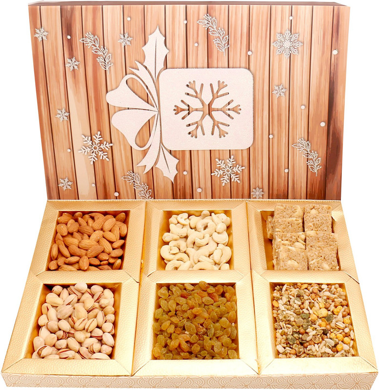 A Beautiful Gift Box Containing best of Almonds , Cashews, Pistachios, Raisins, Roasted Namkeen and Healthy Granula energy Bites. Net Weight: 600 gms.