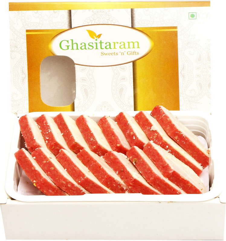First time in india Ghasitaram introduces Strawberry Irish kaju Katli made with the goodness of world’s best Goanese Cashews and the sweetness of strawberries coated with the blend of creamy chocolate to indulge your taste buds into a different world of sweets.You have to try it to believe it. Net Weight: 200 gms.This mithai has been specially packed using Italian technology for an extended shelflife…