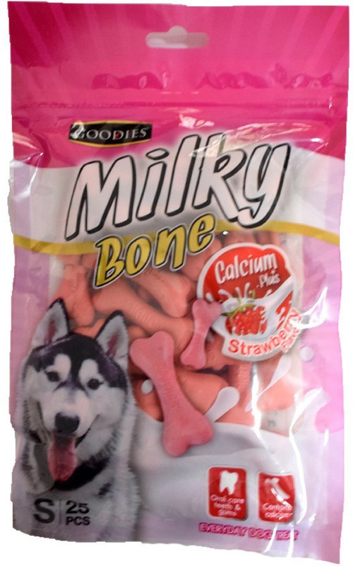 Goofy Tails-Goodies Calcium Plus Strawberry Milky Bone includes special burst of strawberry flavor which melts delightfully in your lovable dogs mouth. This is the best treat for your pet. Ideal for all breeds and all age of dogs.