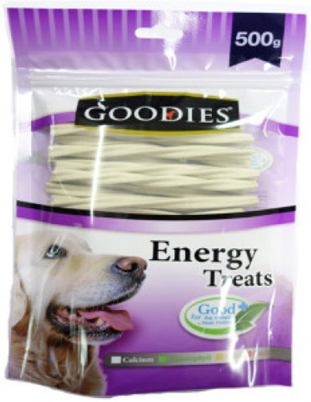 Goodies Energy Calcium Twisted Chew Sticks offer to satisfy the chewing urge of your pet besides giving it a tasty and healthy snack. This high quality chew stick can be made a regular feature of your dogs dental care routine as they help scrub off the plaque and tartar from the teeth and gums of the dog. Clearing the harmful elements from the mouth also leads to reduction in bad odor. Special nutritional composition also assists in maintaining the health and beauty of coat. Efforts put by the dog in enjoying the chew treat would also help the dog strengthen its jaws. Delighting the canine, the chews can be fed as a snack or given to motivate the dog during a training session.