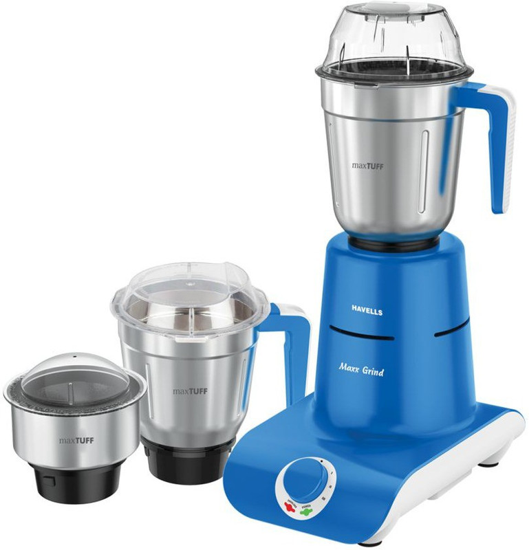 Havells brings to you this 750 W mixer grinder who will be a wonderful helping hand to let you prepare delicious pastes and chutneys. You can change the speed by up to three levels. It is an easy appliance to use, thanks to the presence of dual LED indicators. This appliance comes with three jars of varying capacities.
