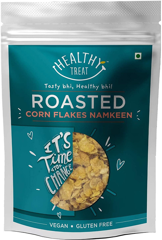 Brand : Healthy Treat Flavour : Roasted Corn Flakes Namkeen About : Roasted Cornflakes Namkeen is your light diet healthy snack which satisfy your hunger without loading you with calories. This is a 100 % roasted snack which is vegan and gluten free. Describe your products in three words. Healthy, Delicious and Guilt and Vegan Free. A Tasty Vegetarian Snack This is a tasty vegetarian snack that you can have anytime of the day. It contains grains and other relevant ingredients that are completely vegetarian.