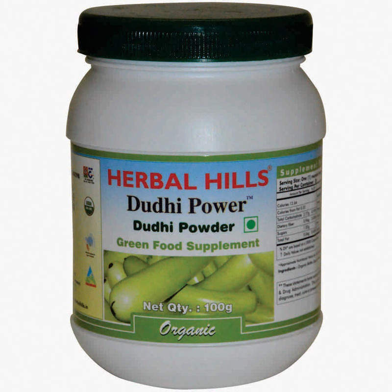 “Dudhi Power – 100 gms powder Green Food Supplement -Dudhi (Bottle gourd) a rich source of Dietary fiber that helps in Fat & fluid metabolism of the body and thus helps to maintain healthy weight & cholesterol. -Also Dudhi is an excellent Liver tonic -While helping in Weight Management, Dudhi also provides essential nutrients like Magnesium, Manganese etc. Benefits : – Helpful in maintaining healthy weight – Rich source of fiber and other essential nutrients – Helpful in constipation and to improve bowel movements – Supports in improving Liver functions “