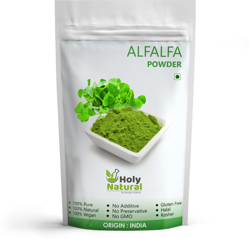 Holy Natural is a reputed brand of Earth Expo Company. At Earth Expo Company, we manufacture and supply best quality Alfalfa Powder, It is a good way to help meet your daily target for vegetable serving. Alfalfa Powder has numerous health benefits. Alfalfa contains almost all the known vitamins, minerals and trace elements needed for premium health. Alfalfa contains Vitamins A, B1, B2, B6, B12, Niacin, Pantothenic Acid, Inositol, Biotin and Folic Acid, Vitamins C, D, E and K. It is high in protein, as it is a legume and also the minerals Potassium, Calcium, Phosphorus, Magnesium and Iron. It also contains trace quantities of Copper, Manganese, Boron, Cobalt and Molybdenum.