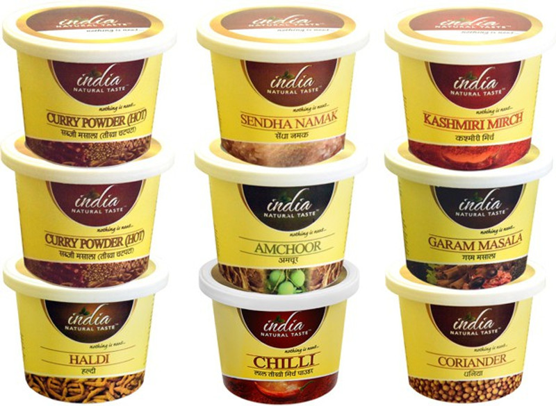 | Sales Package | 1 Haldi Powder 100g, 1 Red Hot Chilli Powder 100g, 1 Coriander Powder 100g, 1 Amchoor Powder 100g, 1 Rock Salt 250g, 1 Kashmiri Mirch 100g, 1 Garam Masala 100g, 2 Curry Masala 100g |