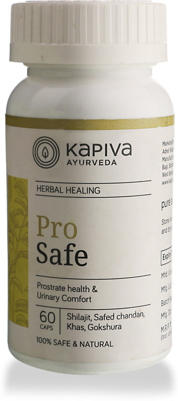 Kapiva’s Pro Safe Capsules helps maintain an healthy prostate. Maintains optimum urine flow. Cures slow and painful urination. Take 1 or 2 capsules twice a day. Kapiva derives its name from the three doshas of ayurveda Kapha-Pitta-Vatta. our range of 200+