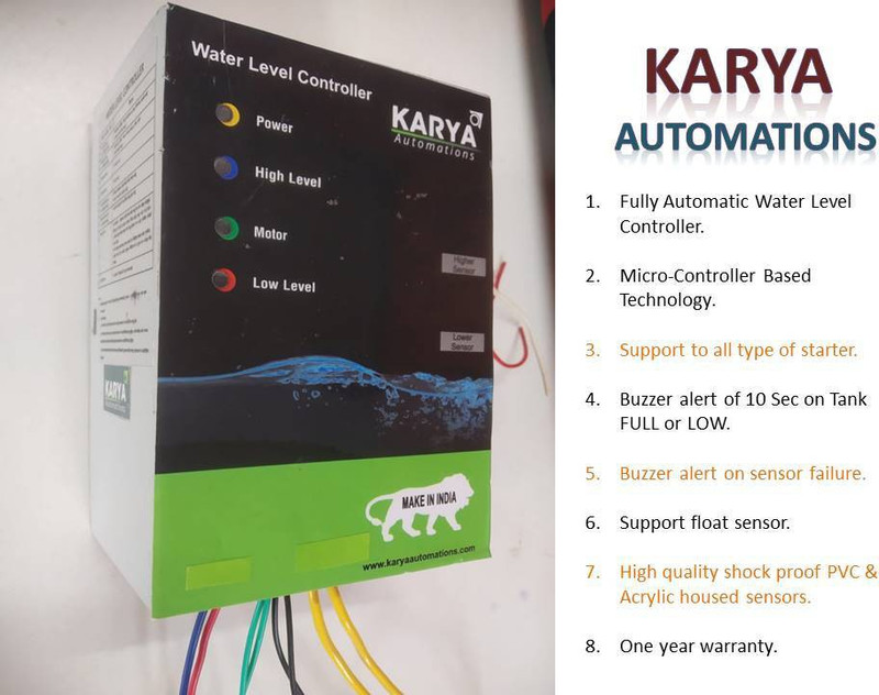 A brand-new, unused and undamaged item that is fully operational and functions as intended. 2.Warranty: 1 Year Seller Warranty 3.Warranty Service: Replacement Working: Fully Automatic Water Level Controller For Tank . This Model Will Automatically Switch ON And Automatically Switch OFF The Motor. Has AUTO ON And AUTO OFF Operation. Suitable For Motor Pump Upto 2 Hp Operated By A Normal ON/OFF Switch / MCB. Also Suitable For Electronic Starter. Suitable For Overhead Tank Only. Has LED Indications For Motor ON. Also Has High And Low Level LED Indications To Know , Corrosion Free Sensors. Has MANUAL Mode And AUTO Mode Functions. In AUTO Mode, AUTO ON And AUTO OFF Operation Occurs. In MANUAL Mode, The Motor Pump Will Be Constantly Running.,Long Life. Easy To Install. Advanced Embedded Technology. Features: 1.Elegant Looks 2.No Man power Required To operate as Fully Automatic . 3.Avoid Overflow ,Longer Life No Mechanical System 4.Saves Electricity 5.Compact ABS (Virgin) Housing 6. Control Overhead Tank Specifications: 1.Operating voltage 220-250 volts AC. 2. Frequency 50 Hz. 3. Load capacity each switch (2 HP)