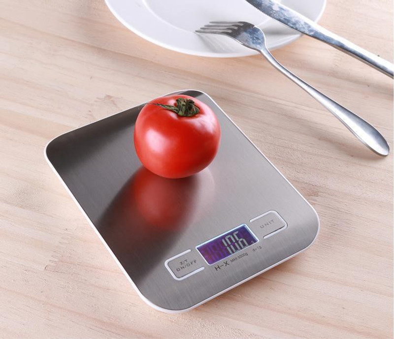 Electronic Stainless Steel Digital Kitchen Scale with LCD Screen up to 5 kg This kitchen weighing scale is useful for preparing healthy meals. It accurately weighs ingredients or liquids and can hold for up to 5kg or 11 lbs. It features multiple unit conversions g / kg / lb / oz / ml / milk ml which can be easily switched with just a touch of a button. It has a TARE function which allows to measure ingredients along with their containers and bowls. It is made with food-grade stainless steel design which allows for easy cleaning. Its sleek smooth design adds an elegant touch to your kitchen. Use the scale on a hard, flat surface & always use and store it in a dry environment. This is not water-resistant so please dont put the digital scale in the water. Wipe or clean it with a cloth. The minimum weight recommendation is 3g-5g. When weighing, place the item on the center of the weighing platform. The blue protective film can be removed before use.
