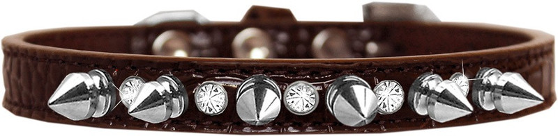 1/2″ wide faux croc collar with one row of alternating clear crystals and silver spikes. These are available in sizes 10 thru 16. There is a lot of bling and attitude packed into these collars. . Imported from USA.