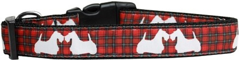 This 1″ wide size Medium dog collar is made of durable nylon with a ribbon overlay. It is adjustable to fit a neck size from 10-18″. Imported from USA.