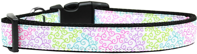This 1″ wide size Medium dog collar is made of durable nylon with a ribbon overlay. It is adjustable to fit a neck size from 10-18″. Imported from USA.