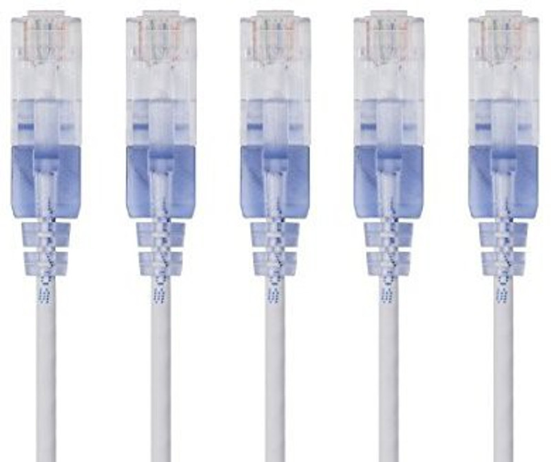 At half the size of standard Cat6A patch cables (0.149″ v 0.29″), SlimRun Cat6A helps reduce congestion in high-density environments, such as data centers and telecommunications rooms. With SlimRun Cat6A, you can fit more cables in the same space, saving you the time and cost of expanding or replacing cable pathways. SlimRun Cat6A is much thinner and lighter than standard Cat6A cables. The 0.118-inch diameter, 30AWG flexible cable and snagless narrow boot design is easier to install/uninstall and takes less space than conventional 23 or 24 AWG Cat6A cables. Monoprice’s 5-Pack Cat6A, 30 AWG, RJ45 Ethernet Patch Cable provides universal connectivity for LAN network components such as PCs, computer servers, printers, routers, switch boxes, network media players, NAS, VoIP phones, PoE devices, and more.