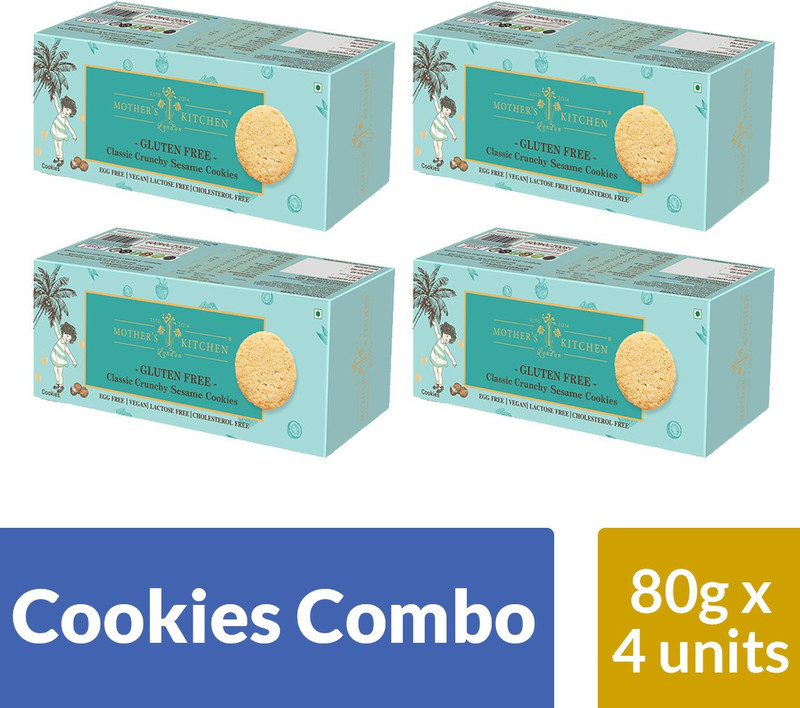 MOTHER’S KITCHEN 320 gm pack of 4 Sesame Seed cookies Winter munchies coated with toasted sesame seeds are not only tasty but have countless health boosting nutrients. Our sesame seed cookies are 100% Gluten-Free, Lactose-Free, and 100% Vegan thereby being an exquisite amalgamation of health and taste.We bring to you the best suitor for your morning tea,healthy treats for the kids and grown-ups alike healthy and tasty.